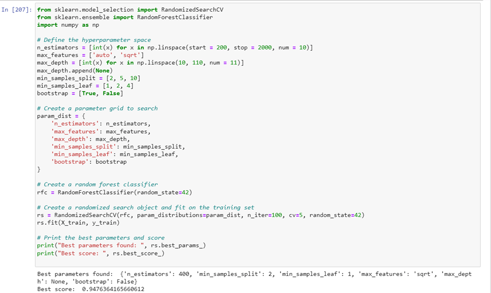 We found the best parameters and the best score using Hyperparameter Tuning
