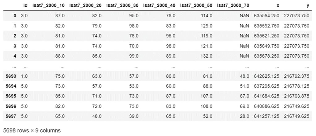 training_py: This table consisted of a previously labeled ID along with X and Y coordinates of geometric polygons marked on the region of interest.