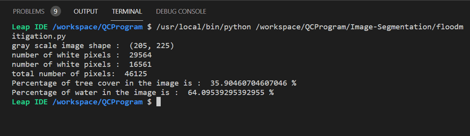 print("Percentage of water in the image is : ",Percentage_water,"%")