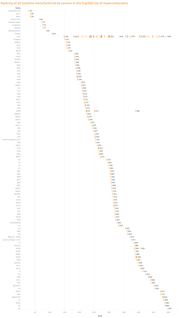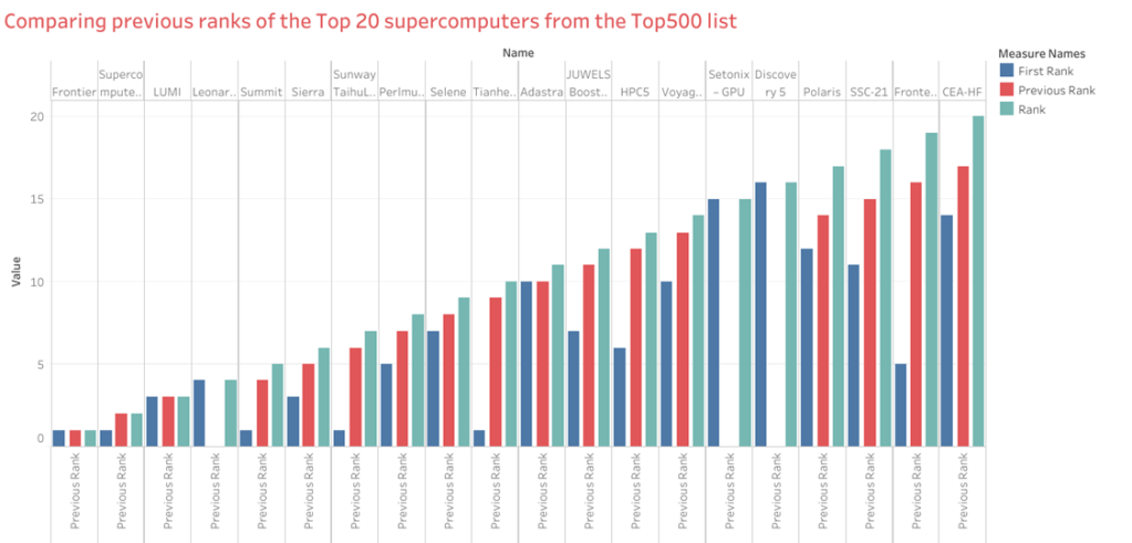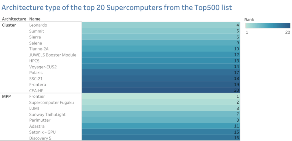 This report’s objective is to share our analysis and visualization of the most recent Top500 list, which was published in November 2022. The top 500 most potent computer systems in the world are listed annually by Top500.org, and this list offers important information on the state of high-performance computing (HPC) at the moment and its tendencies.