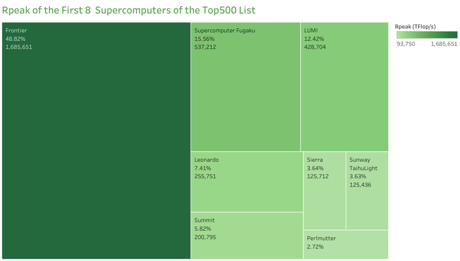 Rpeak of Frontier Supercomputer is almost equal to the next 7 Supercomputers combined!