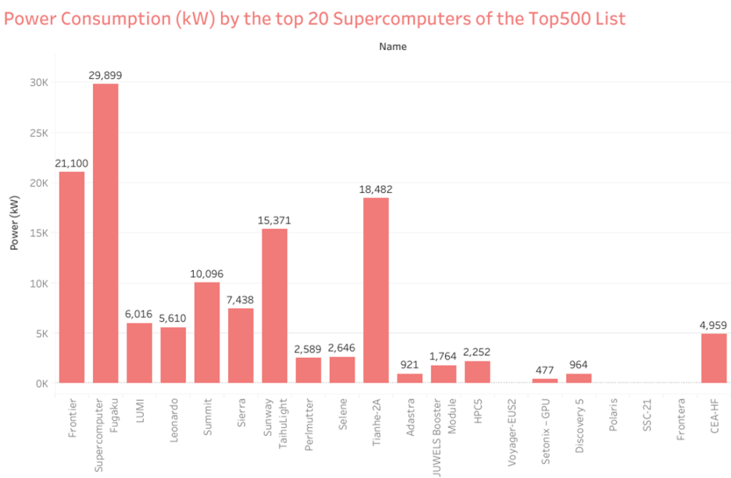 Power consumption by the top 20 Supercomputers of the Top500 list