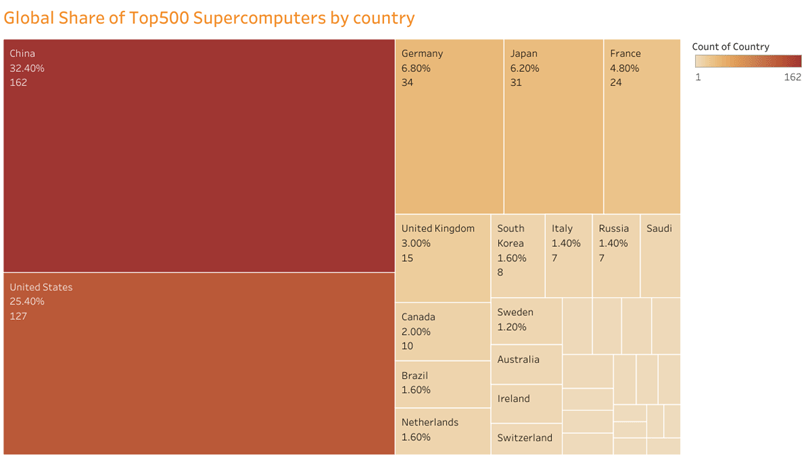 - China and USA own more than 57% of the world’s Top 500 Supercomputers.