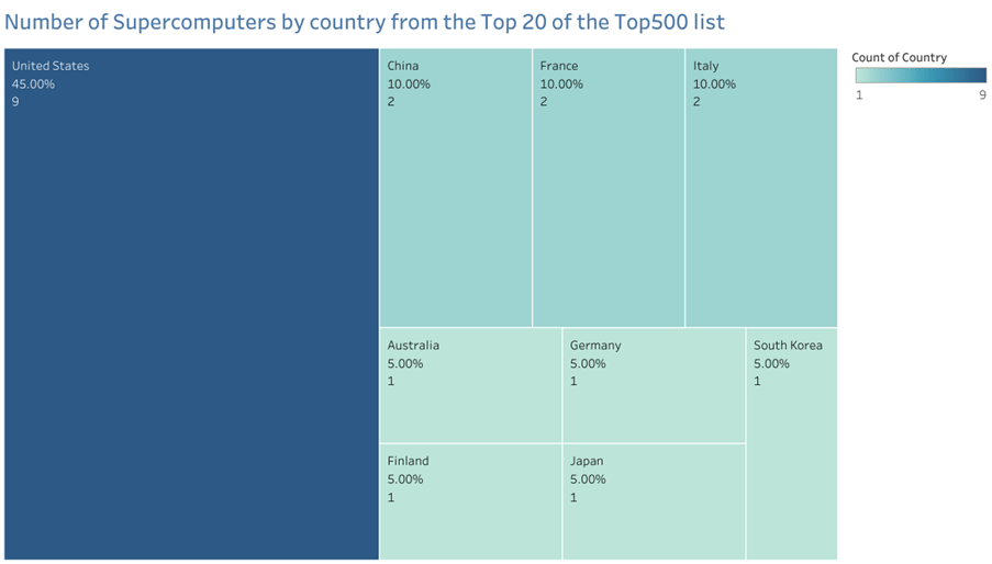 - USA owns 45% of the top 20 supercomputers in the world, taking the count to 9.