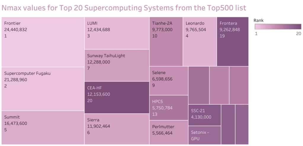 The Linpack benchmark uses a dense system of N-dimensional linear equations to assess a supercomputer’s floating-point performance. A supercomputer’s “Nmax” is the biggest problem it can solve in a specific amount of time, usually 1 hour.