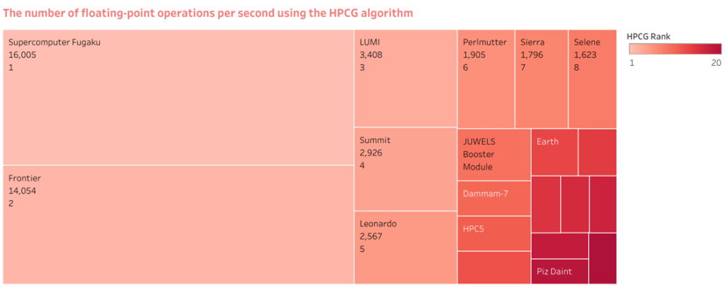 The HPCG List, which is based on the High-Performance Conjugate Gradient (HPCG) benchmark results, offers an alternate criterion for evaluating supercomputer performance. The HPCG List gauges how well a system performs while utilizing the Conjugate Gradient method to solve a system of linear equations, as opposed to the TOP500 List, which concentrates on the LINPACK Benchmark, which gauges a system’s floating-point performance. The workloads that supercomputers are expected to manage in scientific and technical applications are becoming more and more complicated, and this benchmark is made to reflect that. The HPCG List thus offers a second perspective on supercomputer performance and draws attention to the systems that are best at handling challenging issues.
